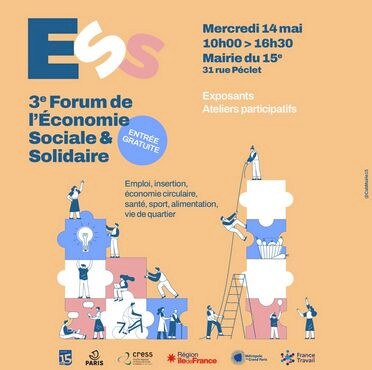 Passerelles et Compétences était présente au 3ème Forum de l'ESS -Économie Sociale et Solidaire- à la Mairie du 15e, le 14 mai avec un stand et un atelier participatif pour découvrir et comprendre l'ESS.